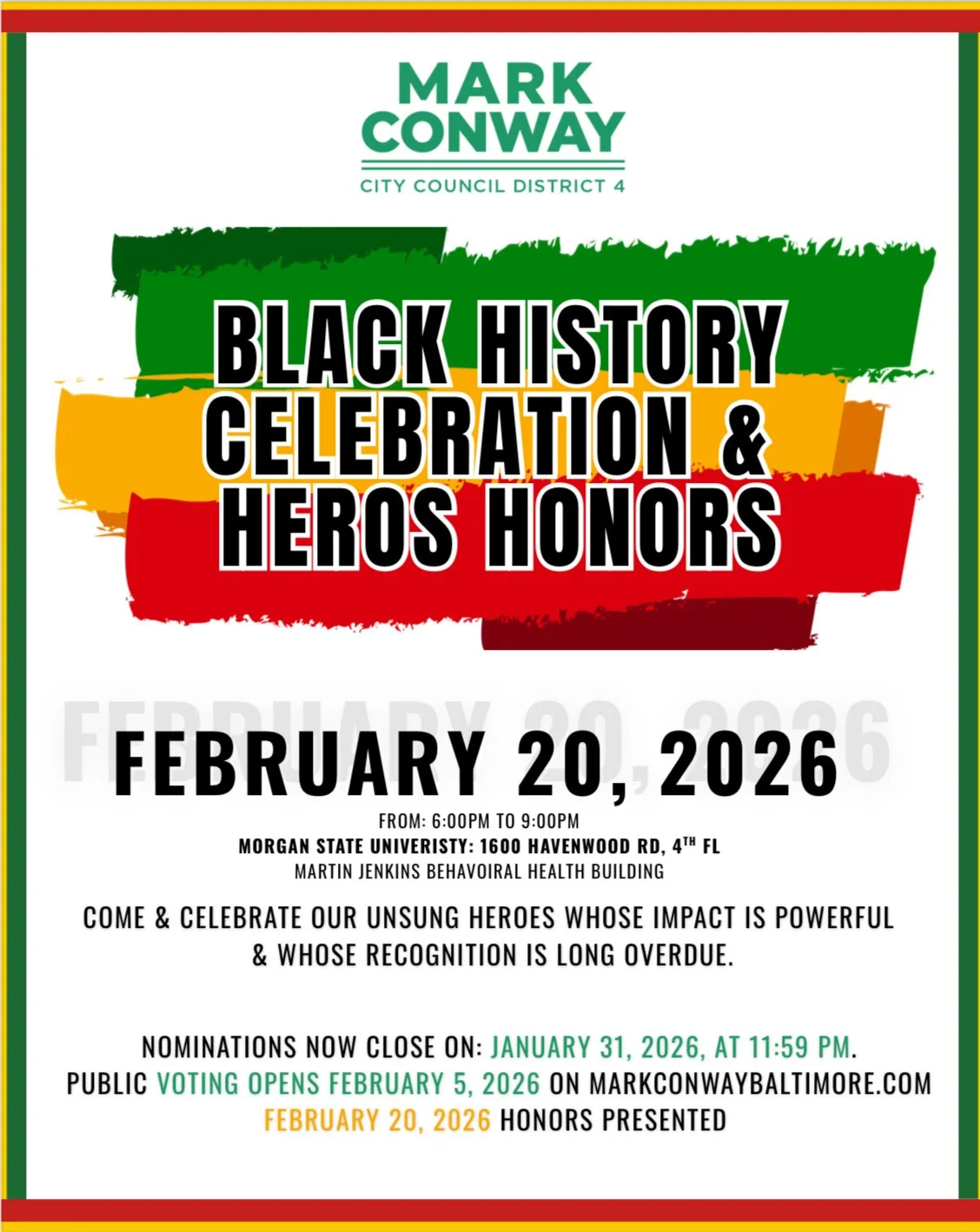 We’re looking for those unsung heroes — whose impact is powerful, even if their recognition is long overdue. Nominations are open to individuals who live, work, or serve in Baltimore City, with priority given to those connected to District 4. Nominations close January 31, 2026, at 11:59 PM.